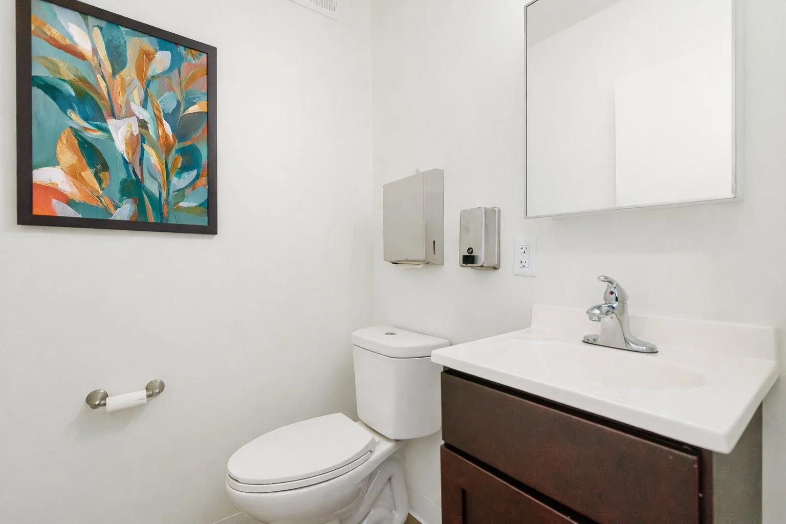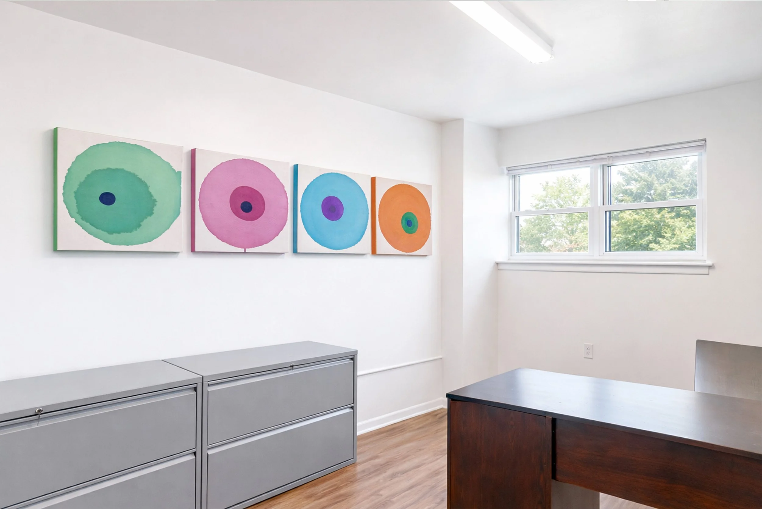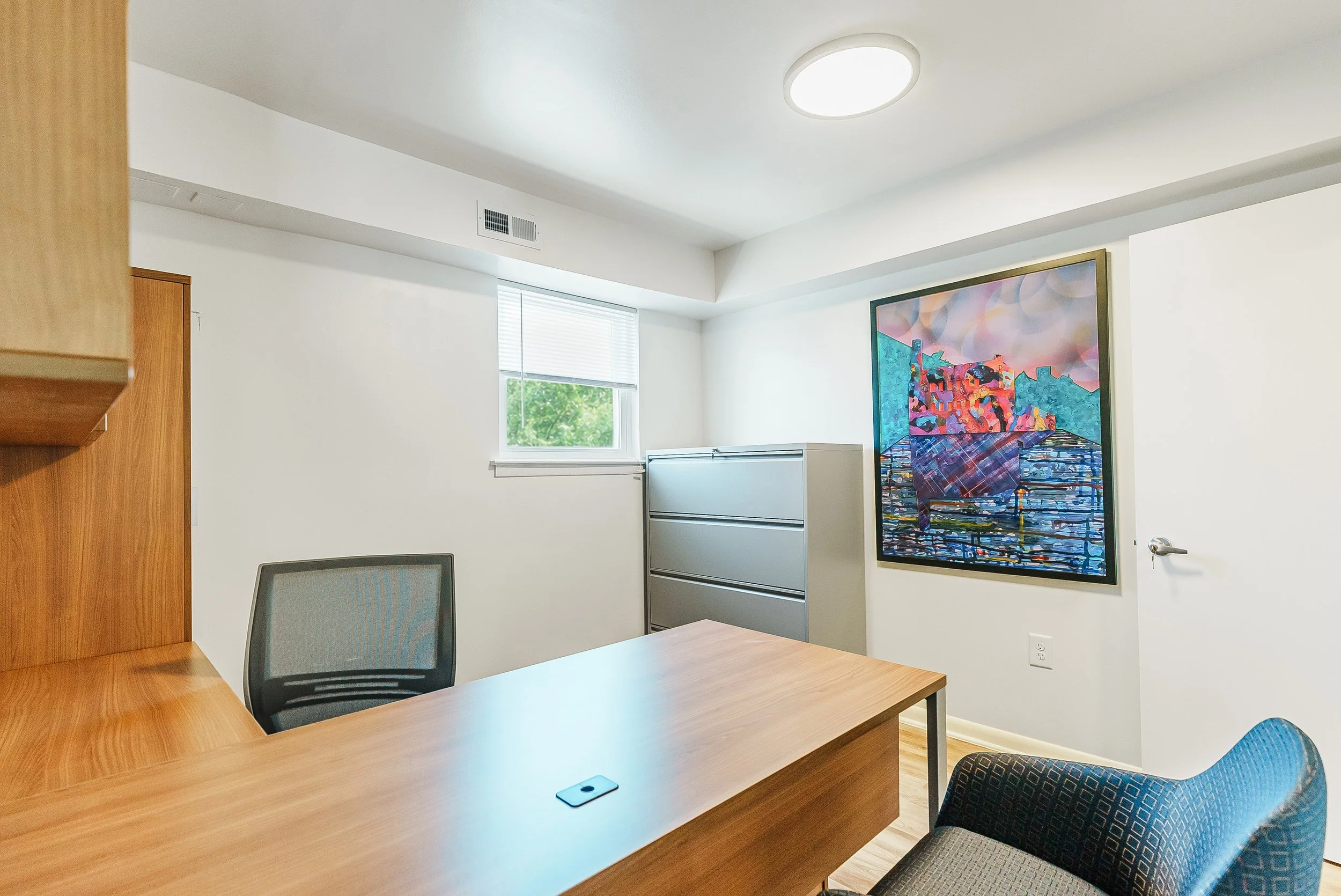 Darby Townhomes is located in Sharon Hill, Pennsylvania, just outside Philadelphia, and reflects the unique intersection of neighborhood charm and nearby urban energy that defines the area. The curated artwork collection brings together crisp botanical imagery, graphic compositions, and expressive abstract works inspired by both the quiet residential character of Sharon Hill and the vibrant artistic culture of Philadelphia. A palette of cool greens, teals, blues, and subtle metallic gold accents introduces a fresh, contemporary atmosphere throughout the community spaces. The result is a visually engaging environment that balances natural references with modern artistic expression, creating a sense of place that feels both connected to the neighborhood and energized by the creative influence of the nearby city.