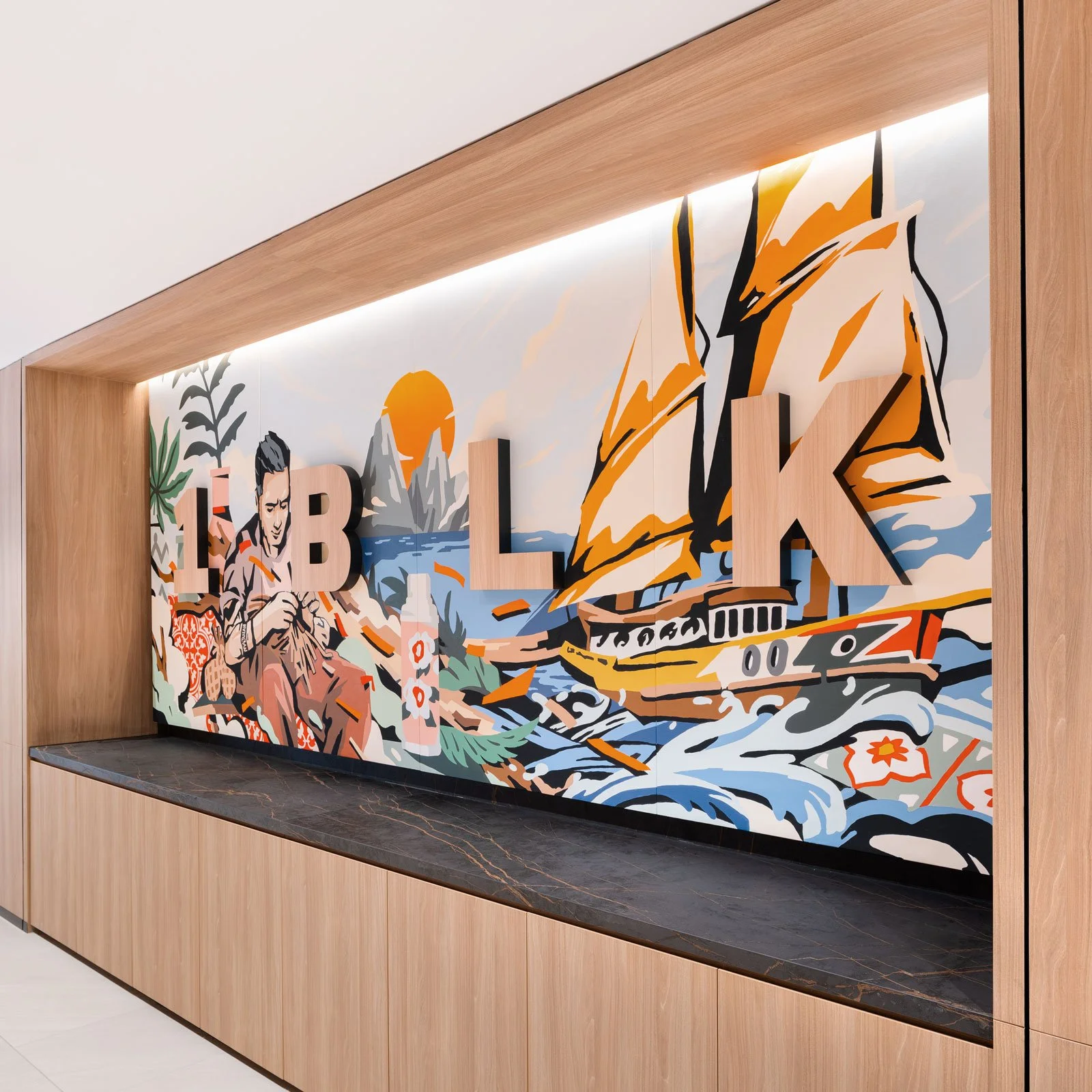 Commissioned for a corporate collector’s Singapore headquarters, these works celebrate the city’s rich heritage and dynamic evolution. Through bold imagery and expressive compositions, they weave together cultural symbols, iconic landmarks, and elements of everyday life—creating a visual narrative that bridges the past and the future. Designed to inspire and engage, the pieces serve as vibrant reflections of identity, tradition, and progress within the space.