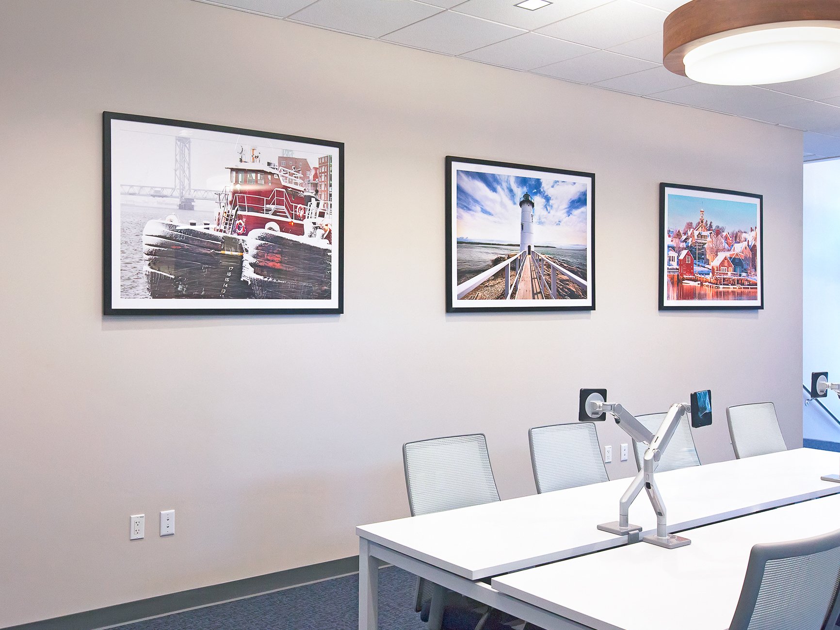 A hyper-local photography curation for an office in Portsmouth, New Hampshire, created in collaboration with local photographers to highlight the city’s waterfront, historic architecture, and familiar landmarks. Designed specifically for the workplace, the collection fosters a sense of comfort and connection—helping both clients and employees feel grounded in the space and the community around them.