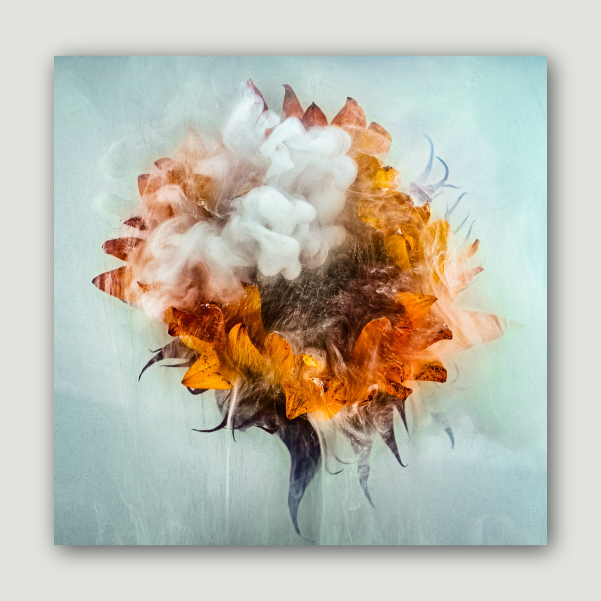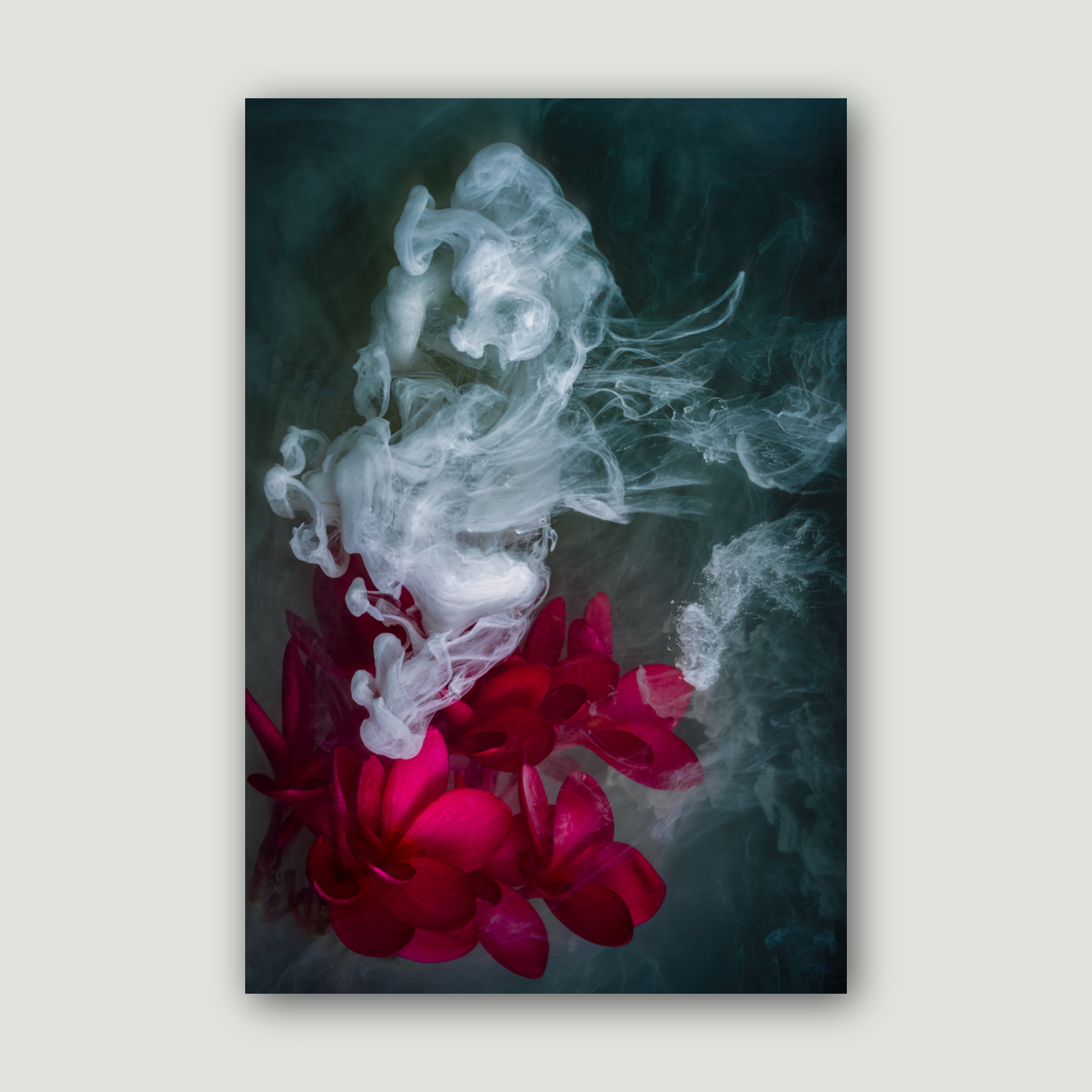 Submerged in water, the blooms are removed from their natural context and enter a suspended state where gravity loosens its hold and form becomes unstable. Petals unfurl, collapse, and recombine with drifting plumes, creating transient configurations that feel at once organic and unfamiliar. The underwater environment transforms the flowers into something less botanical and more elemental.